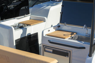 Fabricada en el astillero NUVA en Barcelona, cada detalle está pensado para ofrecer máximo rendimiento y estilo.