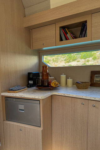 Este sistema, inspirado en las camper, permite elevar el techo para crear un ambiente abierto y ventilado, brindándote protección contra el sol o la lluvia. Ideal para relajarte o dormir al aire libre, con total comodidad y estilo, mientras disfrutas del mar.