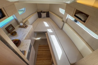 La NUVA M11 Cabin ofrece espacio para hasta 8 personas pernoctando, asegurando una experiencia cómoda y funcional en cada travesía. Con su diseño optimizado, podrás disfrutar del mar con total confort y amplitud.