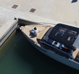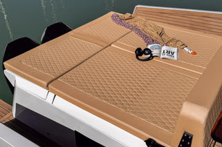 Innovadora y exclusiva, la cama exterior con techo elevable de la NUVA M11 Cabin revoluciona la experiencia de descanso en el agua, combinando funcionalidad y estilo para ofrecerte un lugar de relax incomparable.
