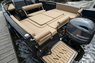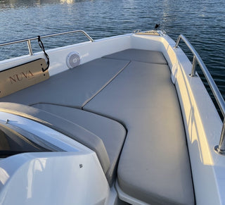 Personaliza la NUVA M6 OPEN a tu estilo eligiendo la tapicería, los acabados de teca y los colores del casco y los detalles. Crea una embarcación única que se adapte a tu personalidad y disfrútala a tu manera.