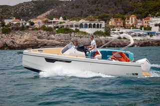 La NUVA M8 no es solo un barco; es un espacio donde tus días se llenan de momentos únicos y tus travesías cobran un nuevo significado. Fabricado en Barcelona con precisión artesanal, combina líneas modernas con un diseño inteligente, adaptándose a cada escapada al mar.