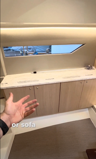El diseño interior de la NUVA M9 OPEN se caracteriza por su gran capacidad de almacenamiento, permitiendo mantener el espacio ordenado y libre de obstáculos. Con dos camas dobles y un baño completo con ducha, cada rincón está optimizado para ofrecerte comodidad y funcionalidad, sin renunciar al estilo. Ideal para quienes buscan disfrutar de largas travesías con todo lo necesario al alcance.